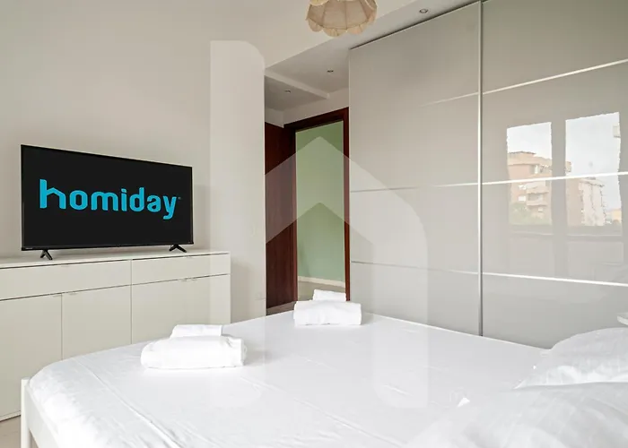 To enjoy your vacation in Pisa, stay at the 60 m² Homiday- Bilocale Cisanello- Parcheggio Privato Interno Apartment Pisa, which is about 10 minutes' drive from the large medieval Battistero Baptistery and 3.1 km from the 13th - century Santa Caterina Church. This 1-bedroom apartment offers a terrace with views of the garden.